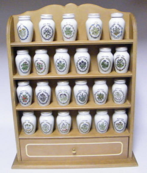 What a Find....on the R1 Auctions!!! A genuine Gloria Vanderbilt Spice Rack and Spice Jars, the rack with 4 shelves and a drawer holding recipe cards for each spice. The fine porcelain jars are hand decorated (in 22ct gold) with pictures of the spices and the lids are waterproof with plastic washers fitted on the insides of the lids. The set originally came out with 24 jars, one is missing leaving 23 in this set, but replacements are available online internationally so the buyer would be able to replace it in time. The rack is 55cm tall and 40cm wide and each jar is 8cm tall. This item is in very good condition, I see no damage, in fact I don't think it has been used much if at all. A certificate of authenticity is included. Combined Weight: 5.6kg.