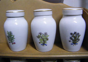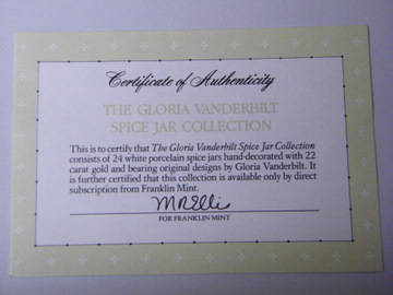 Genuine Gloria Vanderbilt Spice Jars and Rack - Porcelain and Wood - Certificate of Authenticity included!