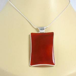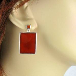 LARGE .925 Sterling & Orange-Red Agate Rectangular Pendant with .925 Chain and Matching Earrings