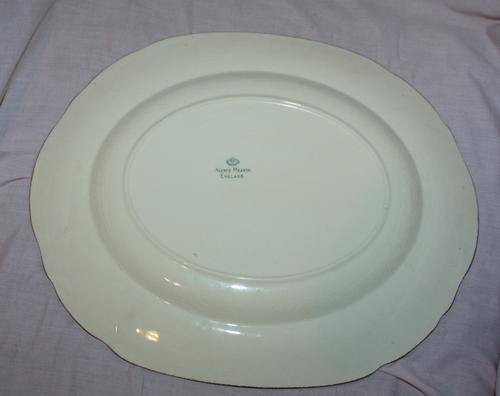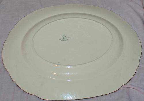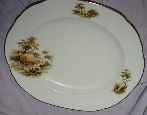 Large Alfred Meakin Meat Platter, The Hayride. Size 36 cm x 30 cm. Has a few aging marks and crazzing. No chips or cracks and gold edging still in a good condition. Platter in a good all round condition. Postage R40.00
