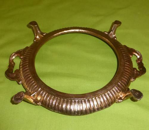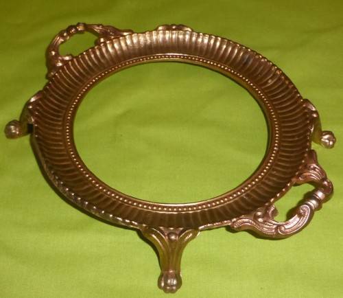 This item is in excellent condition! The brass stand has a copper-coating. Size is 26,5cm across (including the brass handles) x 10,5cm high (on the stand). It weighs a whopping 2,8kg's! A MAGNIFICENT CENTRE-PIECE!