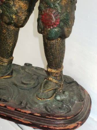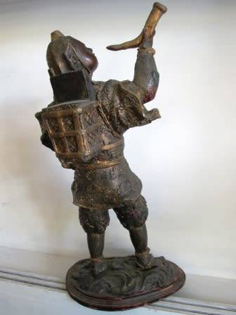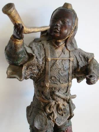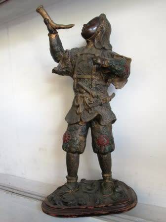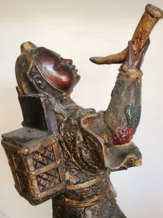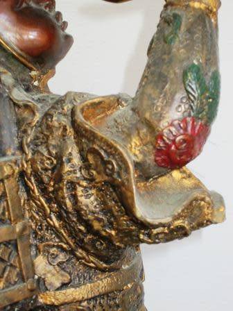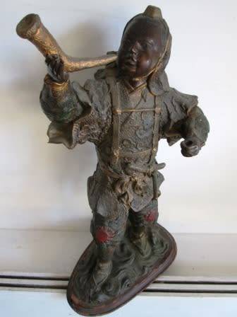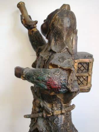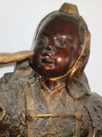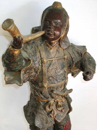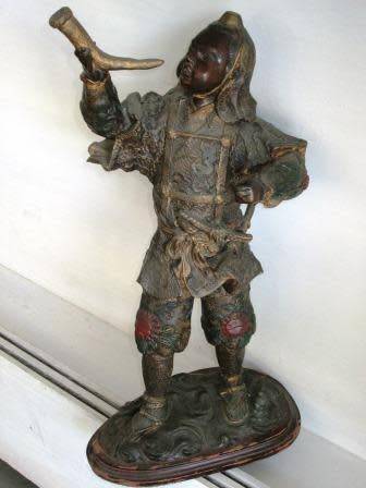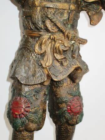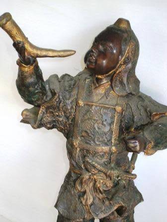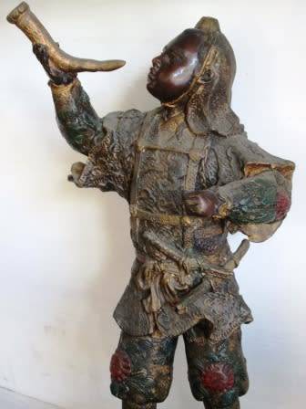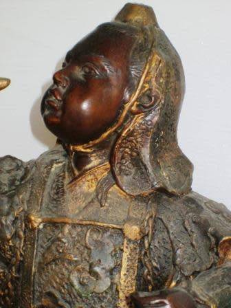 Large Antique Cold Painted Solid Bronze Chinese Warrior Statue