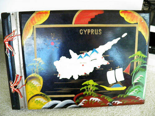 Large Antique Wood and Laquer Photo Album Handpainted Black Pages Cyprus circa 1940