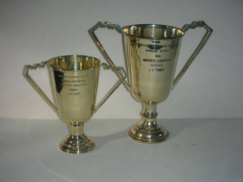 Large Art Deco silver plated trophy, 26 cm in height, 16 cm wide at mouth, marked Grenadier EPNS, engraving on one side, postage R70.00, Postnet R100.00, add 3% of value for insurance SAPO, this does not include damage, add same value for Postnet that includes damage and loss.