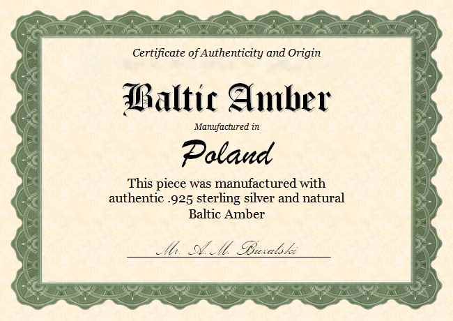 The amber comes from Poland and a little certificate of authenticity and origin will accompany the ring. It is hallmarked for sterling silver - 925