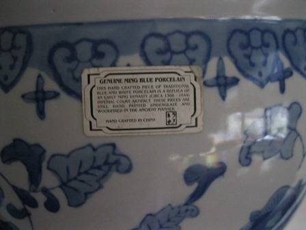 You are bidding on Large Ming Blue & White Planter, this handcrafted piece of Traditionalblue & White porcelainis a replica of an early ming dynasty Circa 1366 - 1644 imperial Court Atifact. These pieces are still hand painted printed underglaze and wood fired in the ancient manner. This planter is 30cm dia x 24cm tall.