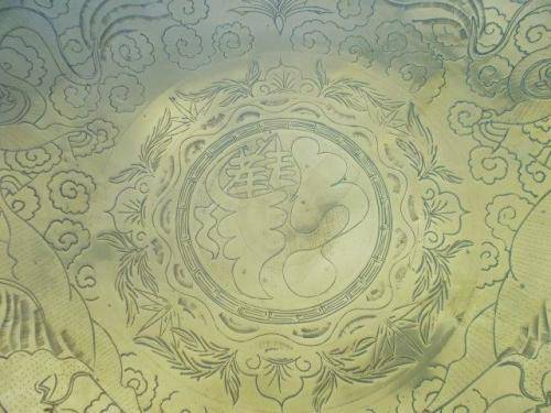 Stunning large oriental brass dish or tray item in perfect condition its is singed made in china nice find for the collector