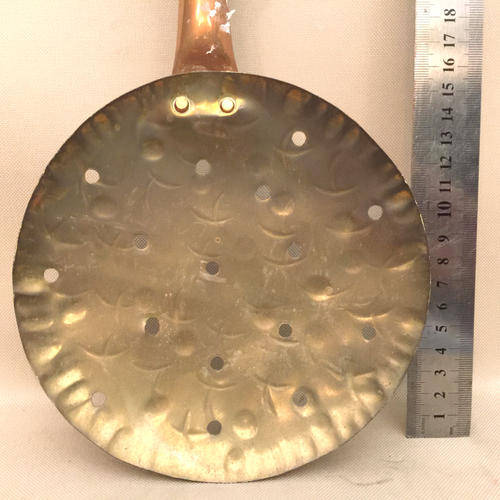 LARGE BRASS SCOOP PAN WITH WOOD HANDLE