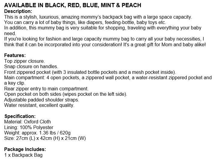 Large Capacity Baby Backpack Bag with insulated bottle pockets