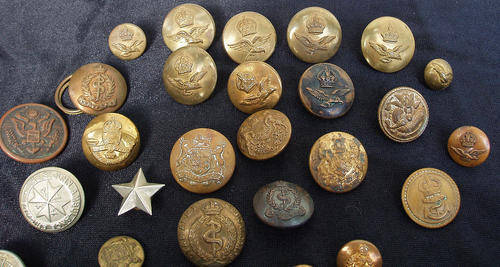 ITEM DESCRIPTION........COLLECTION OF APPROXIMATELY 53 ASSORTED VINTAGE AND OTHER MOSTLY SOUTH AFRICAN FORCES METAL BUTTONS......SAAF, PLUS MANY MORE. WHITE METAL SMALL LOT WITH SPRINGBOK ON THEM? PRICED AT LESS THAN R2 EACH.......SERIOUS BARGAIN FOR THE COLLECTOR!