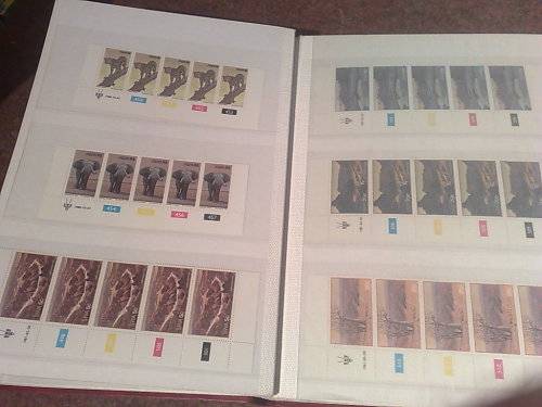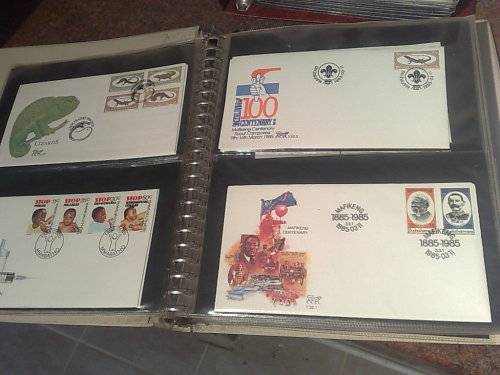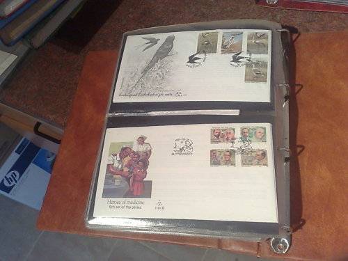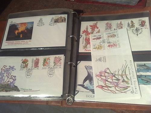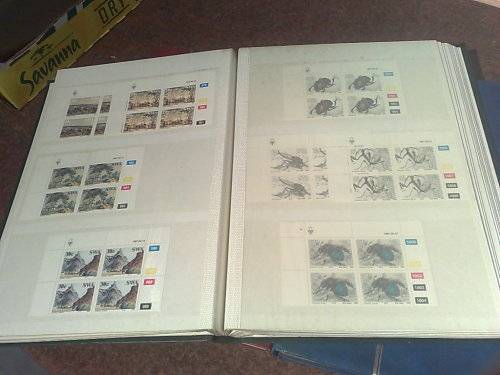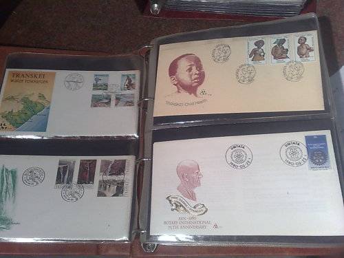 LARGE COLLECTION TO CLEAR-DUE TO POOR STORAGE THE COLLECTION HAS RUST INTRUSION AND LOTS OF DUST AND SOILING-THESE WERE QUALITY ALBUMS AND ONE OR TWO MAY BE USABLE AND THE FDC ALBUMS NEED SOEM CLEANING THEN THEY WILL BE ABLE TO BE USED,AS WERE QUALITY SLEEVES,AND MAINLY JUST DIRTY-BASIC COLLECTION OF 8 STOCKBOOKS WITH RSA AND SWA CONTROLS AND 4 FDC ALBUMS WITH HOMELANDS FIRST DAY COVERS-SEE DESCRIPTION BELOW,AN HONEST DESCRIPTION AS FAR AS POSSIBLE AS I CANNOT CHECK EACH ITEM BUT TRIED TO GIVE A BREAKDOWN-ALTHOUGH MOST ALBUMS AFFECTED THERE ARE MANY CONTROLS AND COVERS THAT LOOK FINE AND CLEAN-I WOULD SAY AROUND 50% PLUS OF ITEMS HERE MAY BE FINE,AND EVEN WHERE CONTROL HAS SOME RUST THE STAMPS CAN BE SALVAGED IN MANY THAT I LOOKED AT-PLUS THE COVERS AT BOTTOM OF ALBUMS ARE MOSTLY CLEAN WITH THE DIRT BEING ON TOP SLEEVE-READ BELOW