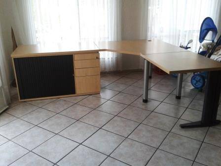 Description : large corner desk with 4 drawers and credenza