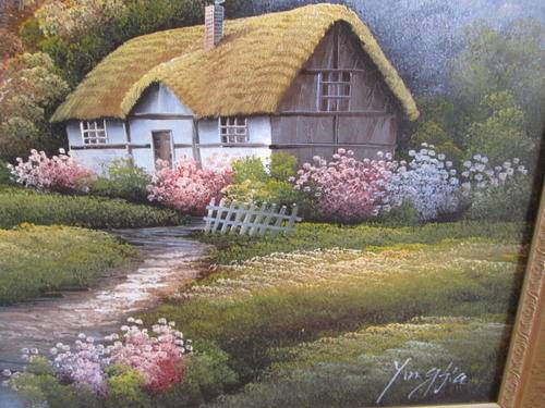 Large Cottage by Lake Oil Painting - Collection Only