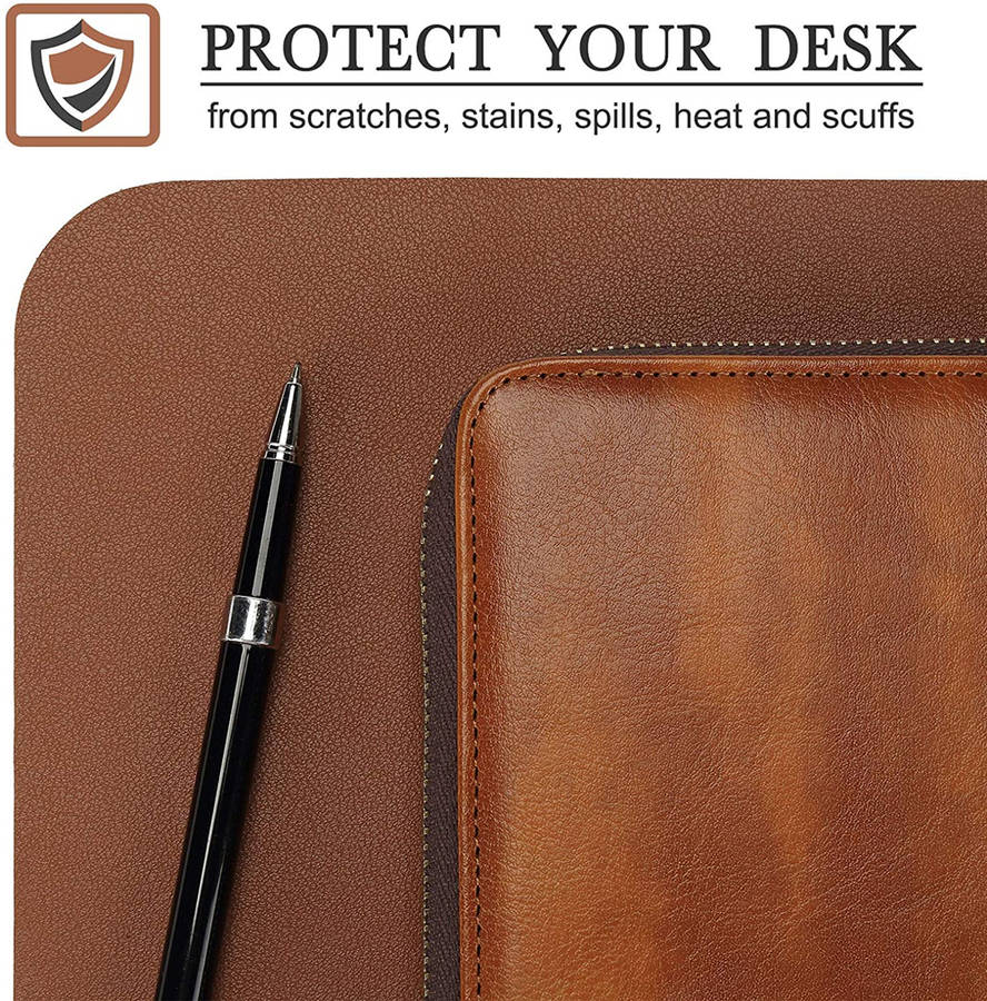 1. PROTECT YOUR DESK Made of durable PU leather material, which protects your desk from scratches, stains, spills, heat and scuffs. It also gives your office a modern and professional atmosphere when you put it on your desktop. Its smooth surface will make you enjoy writing, typing and browsing. It is perfect for both office and home.