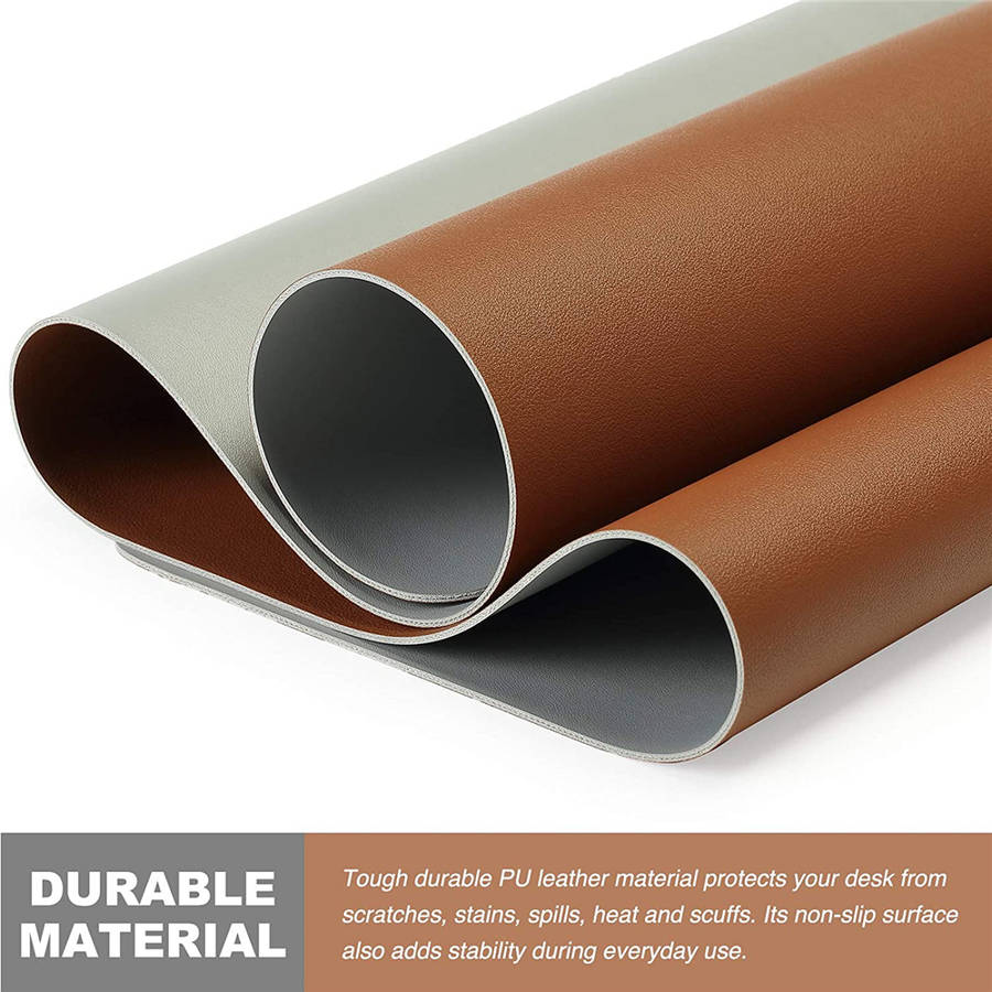 2. TOUGH DURABLE MATERIAL & DOUBLE-SIDED USE Made of premium PU leather material with durable construction, the desk pad protector will last for a long time. We designed it with the same material but with different colors on each side, and you can use both sides.