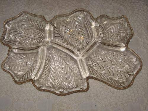 a Lovely Large Glass Snack Tray with Gilted - Ribbed Edges. About 38cm in length and 26cm in width. Weight around 2Kg.