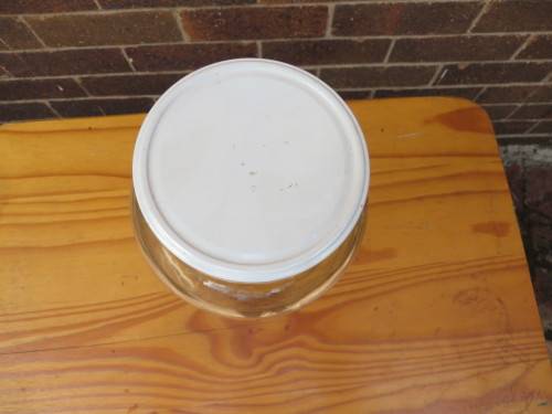 LARGE GLASS STORAGE JAR - 145 MM DIAM. - 235 MM HIGH - AS PER SCAN
