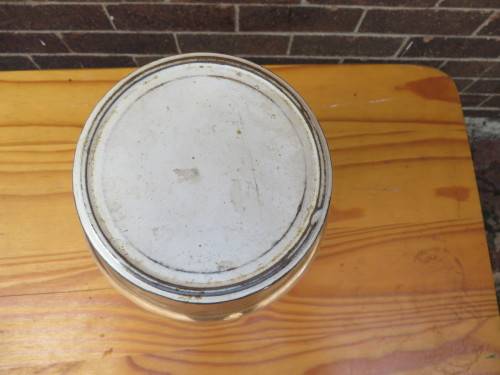 LARGE GLASS STORAGE JAR - 145 MM DIAM. - 235 MM HIGH - AS PER SCAN