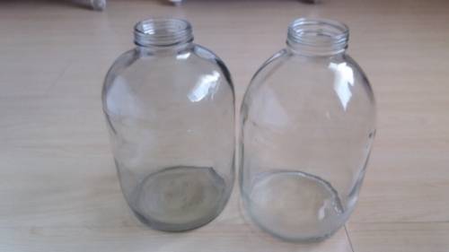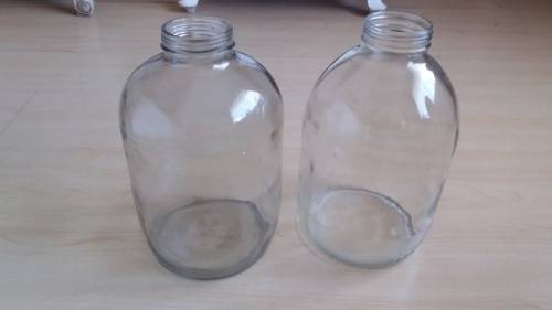 Large glass storage jars. There are 2 available at R85 each. size: height 30cm. top width 7cm. Base width 16cm. No lids.