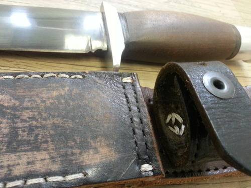 This knife was made for me by the father of a friend of mine. I started making a knife out of leafspring and showed it to him. He offered to finish it for me the way he wanted it, so i let him.