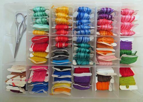 Here we have for sale A LARGE LOT OF EMBROIDERY THREADS INCLUDING SCISSORS AND A STORAGE BOX