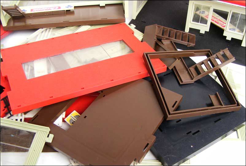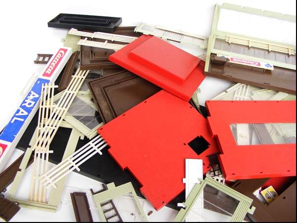 This is a large lot of parts for model railway buildings. As per the images, I've tried to build a few, but just don't know how everything fits together!