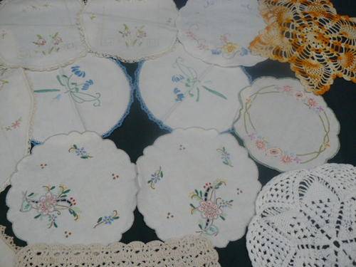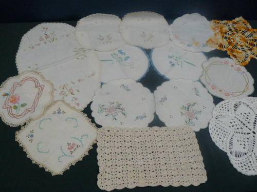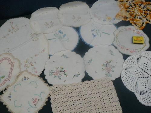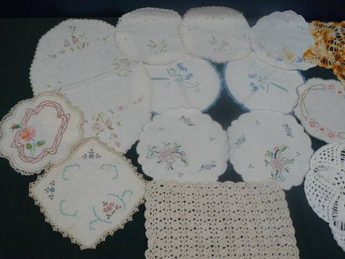 LARGE LOT OF VINTAGE COTTON EMBROIDERED DOILIES AND OTHERS