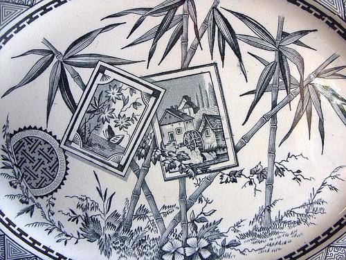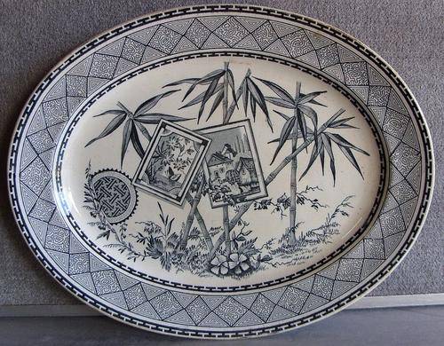 LARGE MEAT PLATTER BY J.M & SON IN THE BAMBOO PATTERN - 1800`S