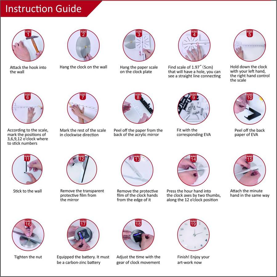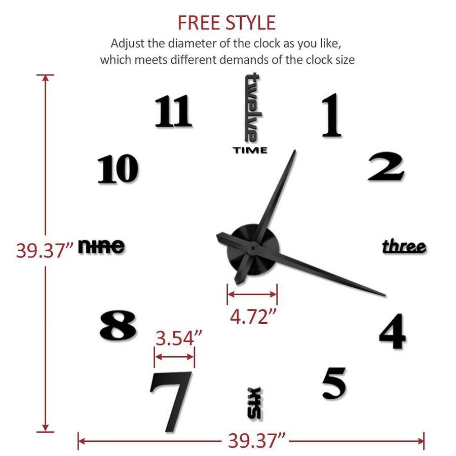 Large Mirror Wall Clock 3D Hanging Clock Bracket Clock Black Silver Feature : Mirror surface wall stickers, a beautiful ornament and also has mirror function.