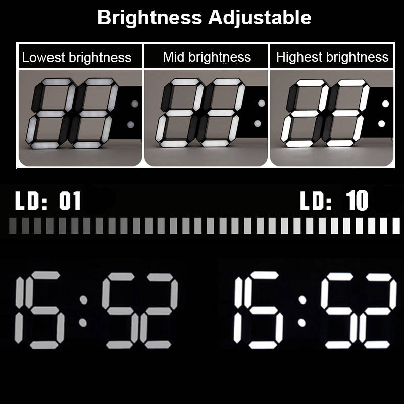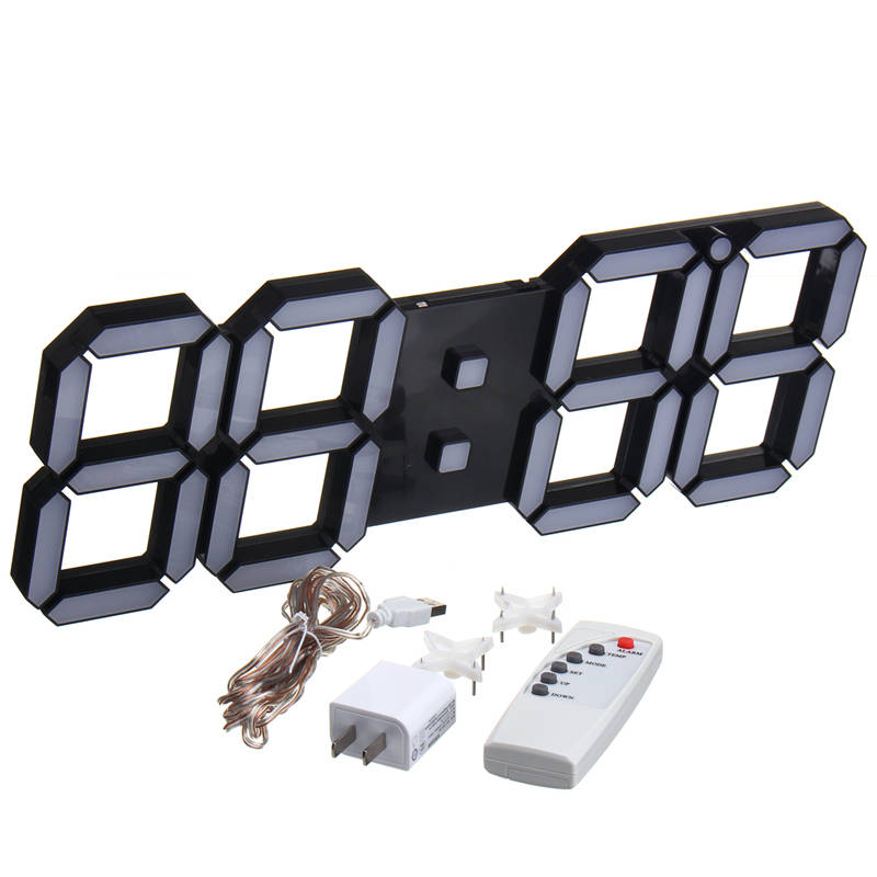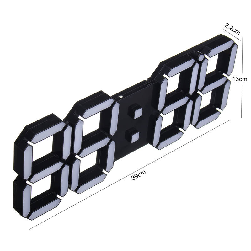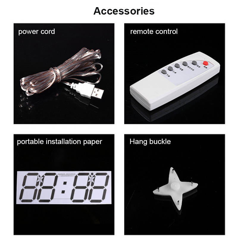 Feature: Made of high quality ABS material, durable and fashion. Can upright or hang on the wall, convenient to use. LED character display module, high brightness, clearly display. Brightness changes automatically according to the surrounding light. Configure remote controller, it can be used instead of keys of commonly used functions, convenient operation. Function: 1. Date display 2. Precise time 3. Temperature display 4. Remote control. 5. Alarm clock (three alarm time can be set). 6. Hours, minutes and time display (12 or 24 hour format selectable) 7. Brightness adjustable Specifications: Material: ABS Voltage: 5V Dimensions: 39 x 13 x 2.2cm Cable length: 3.5m Color: White / Black (Optional) Package included: 1 x Clock 1 x Usb cable 1 x Remote 2 x Hang buckle