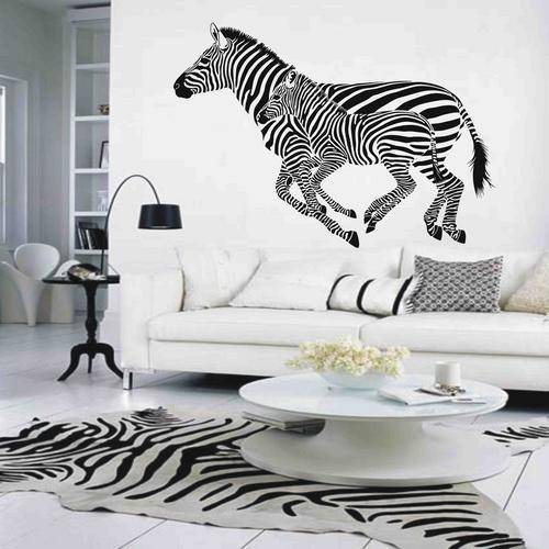 LARGE MOTHER AND CHILD ZEBRAS. STUNNING AGAINST THE WALL.