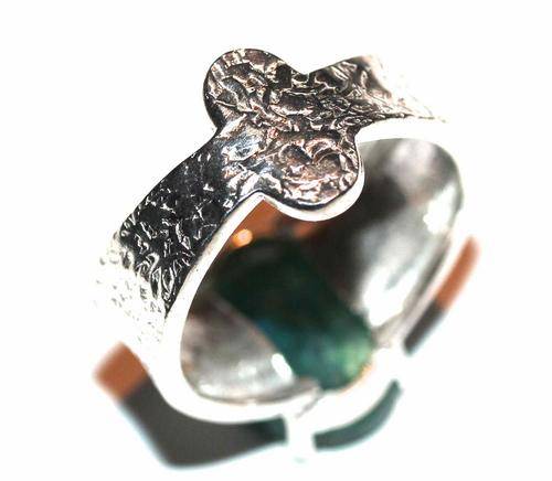 The ring itself is a solid broad band of sterling silver and has an interesting shape at the back that stabilises the fit on the finger so it doesn't move around.