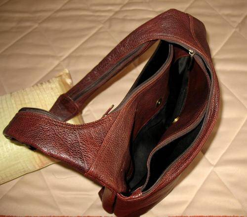 LARGE NEW GENUINE LEATHER "STAND-UP" HANDBAG * 3 POCKETS * LONG WIDE SLING