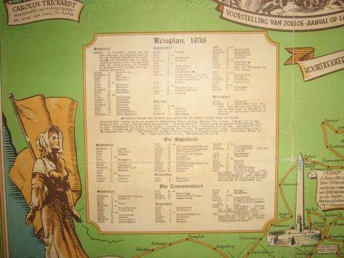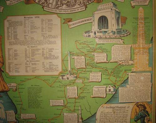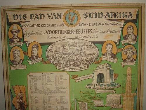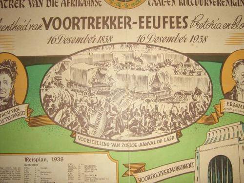 LARGE OLD WOODEN "DIE PAD VAN SUID-ARIKA, BY GELEENTHEID VAN VOORTREKKER-EEUFEES PRETORIA EN BLOEDRIVIER, 16 DESEMBER 1838 - 16 DESEMBER 1938" PLAQUE/ PRINT.