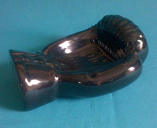 LARGE PORCELAIN "OLD BUCK GIN" BOXING GLOVE-SHAPED ASHTRAY.
