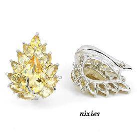 LARGE SOLID 925 STERLING SILVER REAL CITRINE EARRINGS