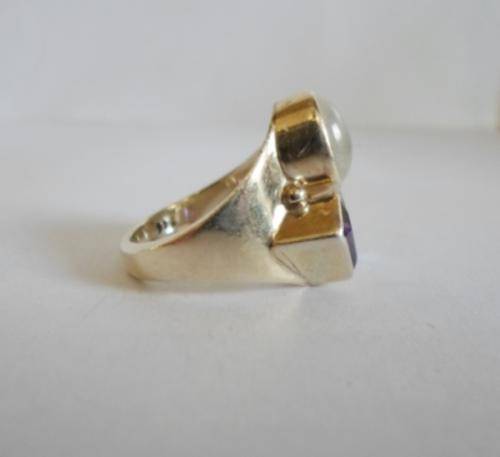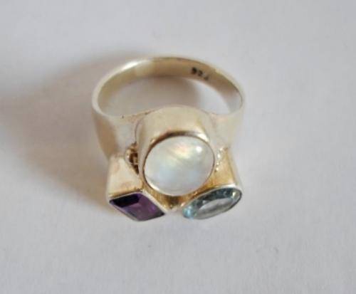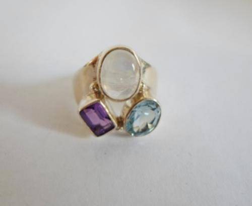 LARGE!! STERLING SILVER BLUE TOPAZ, AMETHYST & MOONSTONE RING ABSOLUTELY BEAUTIFUL!! RING SIZE R