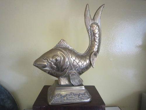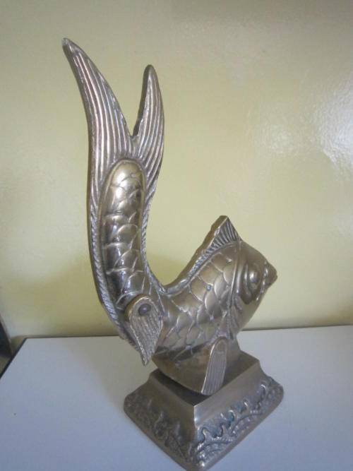 Lovely heavy and very different solid brass vintage doorstop of a fish jumping over the waves (the bottom square show the waves) just nice and unusual doorstop. 31xms H and 25cms L, postage 90.00 due to size and weight.