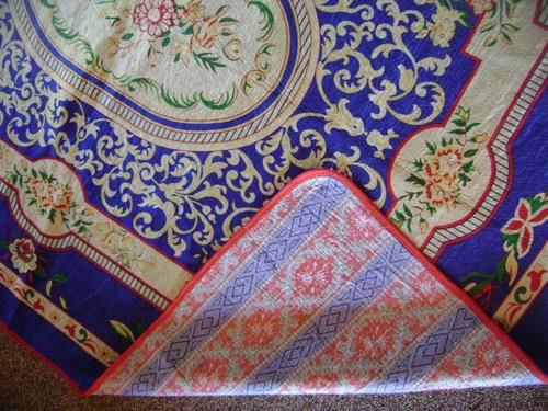 THE ORIENTAL PATTERN SIDE IS MADE OF A TYPE OF A CRUSHED VELVET MATERIAL,
