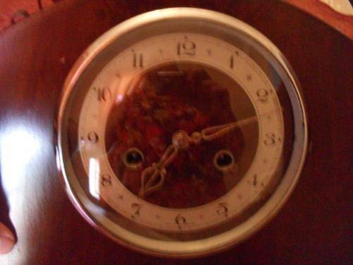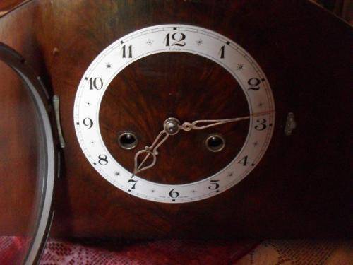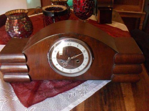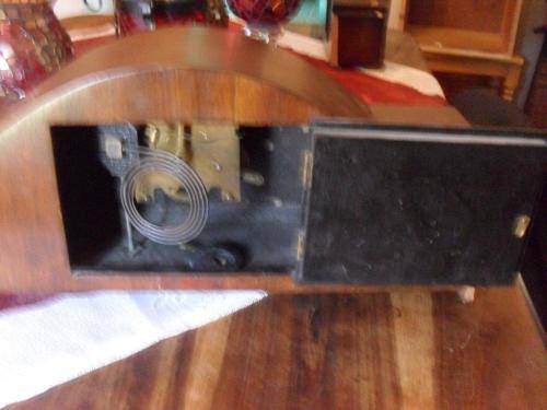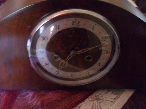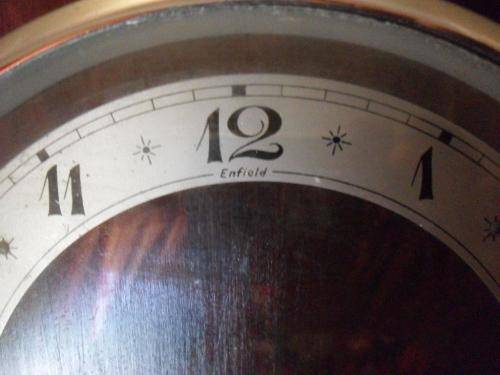 LARGE VINTAGE ENFIELD MANTLE CLOCK...MADE IN ENGLAND.....ART DECO STYLE.....PLEASE NOTE SMALL PIECE OF VENEER MISSING FROM BOTTOM OF THE BACK OF THE CLOCK...SEE PIC....
