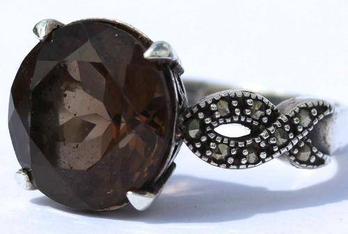 LARGE VINTAGE MARCASITE AND SMOKEY TOPAZ STERLING SILVER 925 RING