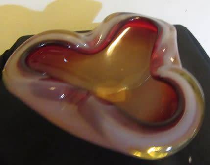 Large Vintage Red, Amber & Milk Glass Murano Ashtray/ Bowl in mint condition size 18cm x 16cm x 7cm high.