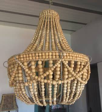 You are bidding on a Large Wooden Chandelier in natural coloured wooden Beads, the chandelier is not electrified however can easily be sorted by buying a bulb fitting from any hardware or electical shop. This chandelier makes a real statement, the chain can be shortened . Size Approx 57cm dia x 70cm from top of chandelier to bottom of chandelier.