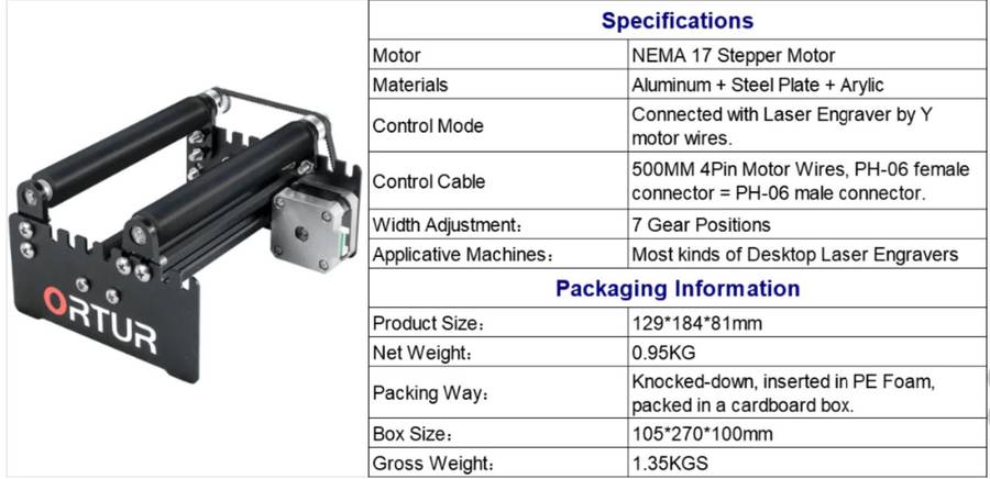 Laser Engraver - Y Axis Rotary Roller for Laser Master 2