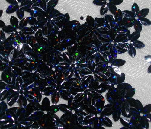 DescriptionLaser  Plastic Flower Pailettes - Blue Shimmer