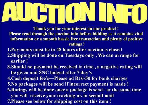 R35.00 Standard shipping using one of our trusted couriers applies to most areas in South Africa. Some areas may attract a R30.00 surcharge. This will be calculated at checkout if applicable. Check my rate