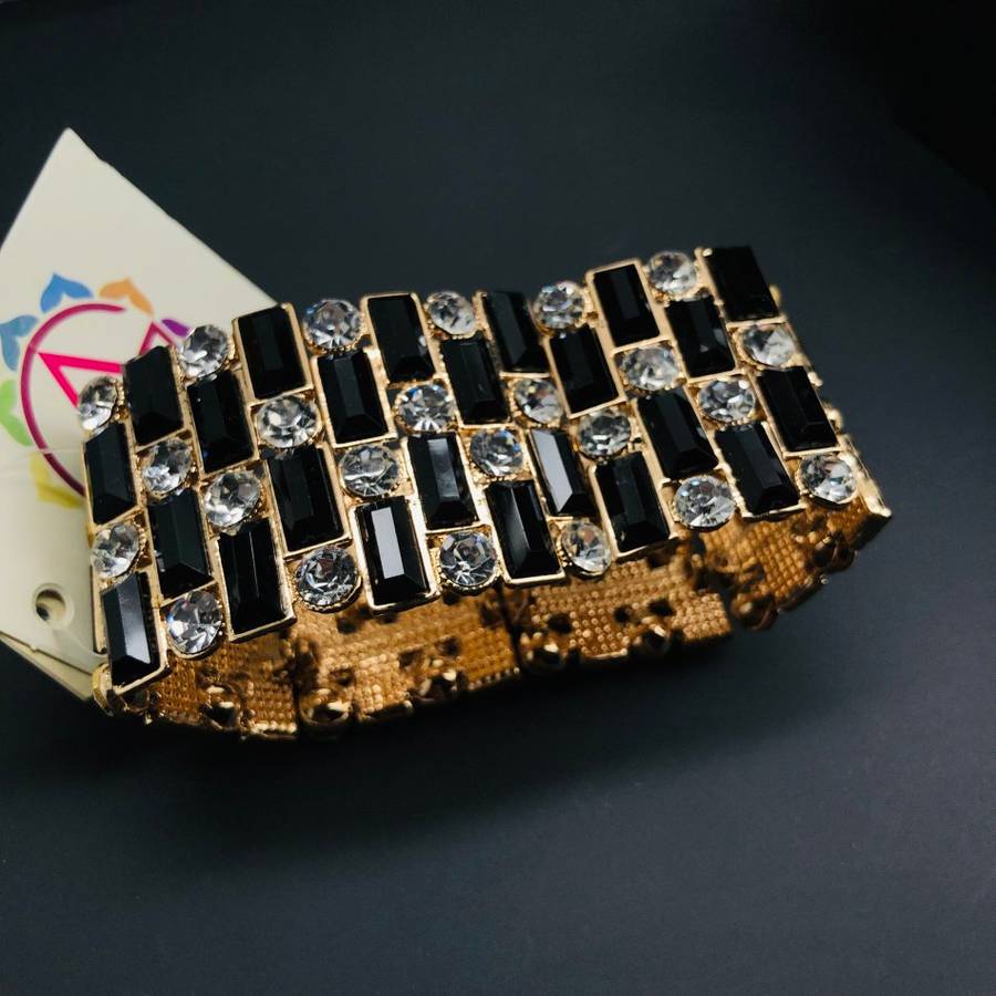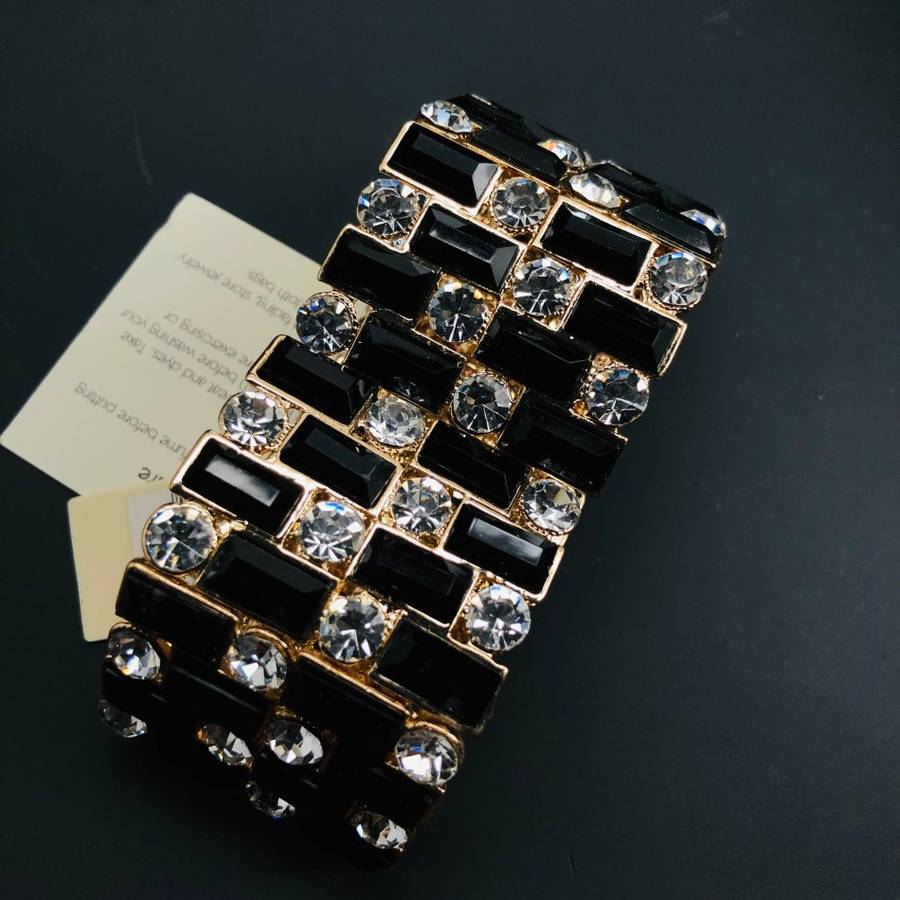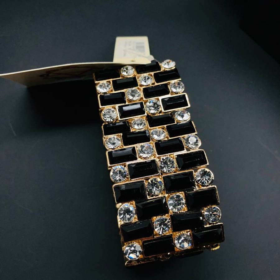 Gold-tone brass bracelet with Austrian Crystal and resin stones. Measurements: Width 1.5" - Not suitable for use in water