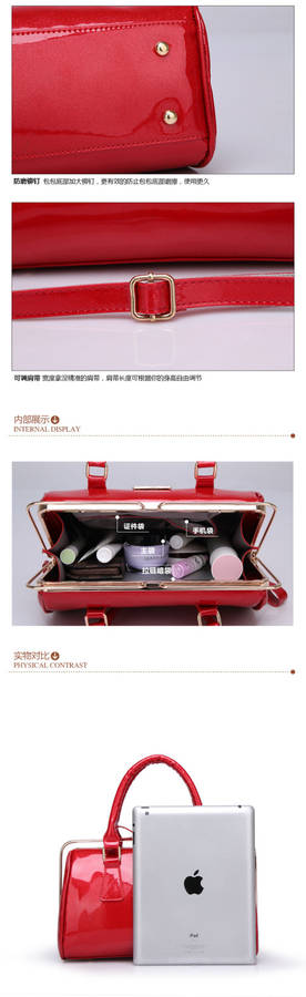 Last clearance! Shining patent leather suitcase ladies handbag. Pink color.
