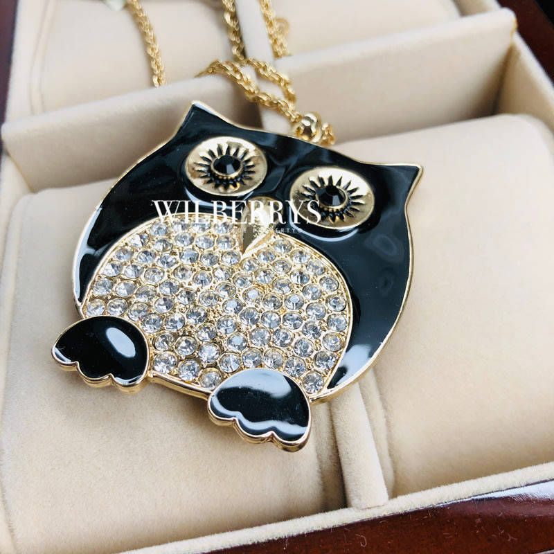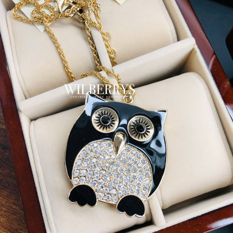 A wise choice for any woman's accessories collection, this playful little owl necklace by Amrita Singh boasts beautiful crystal eyes and a sleek gold-tone chain. Layer over this season's cosy knits for a heart-warming touch. Owl necklace with Austrian crystals, resin stones and enamel detailing. Measurements: Length 28"-29.75" adjustable; Pendant: Length 2" x Width 1.75". Not suitable for water usage. Comes packed in jewelry pouch.