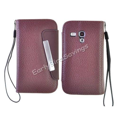 premium wallet case made of high quality material of PU leather and hard plastic. Slim, compact and lightweight, stylish design, stand function. Magnetic Flip Closure. Protect your mobile phone from scratch, dirt, impact and shock. Provides easy access to all the exterior features of your mobile phone. Comes with 2 credit card slots & money slots. Fits Samsung i8190 Galaxy S3 Mini. Phone not included.